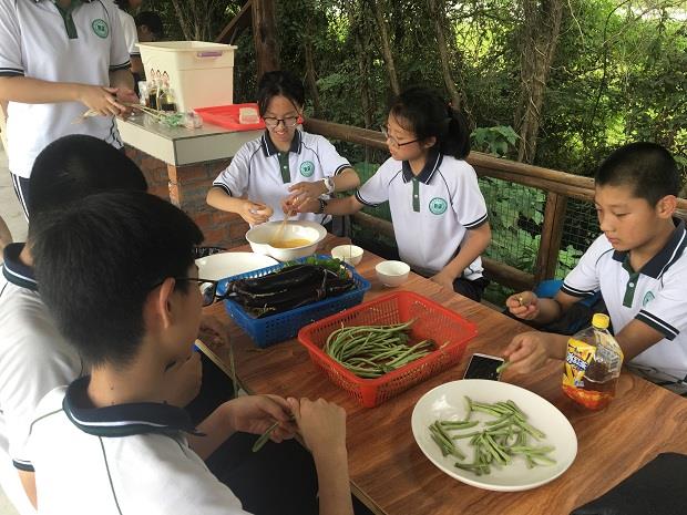 第三站:新生活 新青年 下午,同学们来到丽山音乐农庄,回到最原始的农业生活状态,化身小小农民,到水里摸鱼、在园里赶鸡、到田里采摘,自己处理食材,亲手生火做饭,完全不一样的生活,特别不一般的体验。小伙伴们齐心协力,分工合作,有的切菜,有的洗锅,有的炒蛋,有的盛饭……眼明手快的下河抓鱼,胆大心细的园中赶鸡……笑声,叫声,不绝于耳,荡漾于心。同学们学会团结,学会体谅,懂得担当,懂得珍惜。劳动的艰辛,劳动的快乐,让同学们成长。