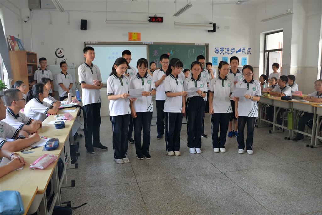 99日的升旗仪式上,八年级1班和2班的同学们深情吟诵他们献给全体教师的赞歌。原创诗歌中描绘了孩子们日常和老师相处的动人场景,记录了各科老师经典的口头禅,满满都是对老师的尊敬和爱戴。