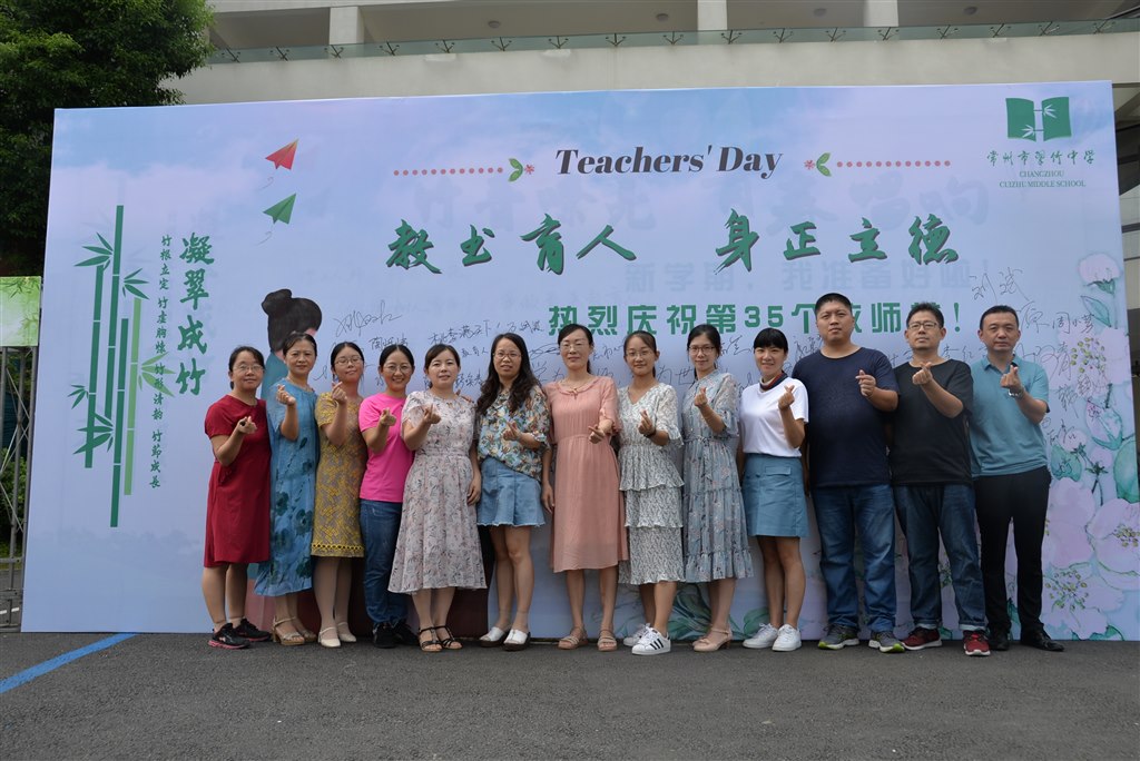 在全国第35个教师节来临之际,常州市翠竹中学举行了“立师德?敬师恩??赞师节?劲师能?强师体”教师节主题活动。