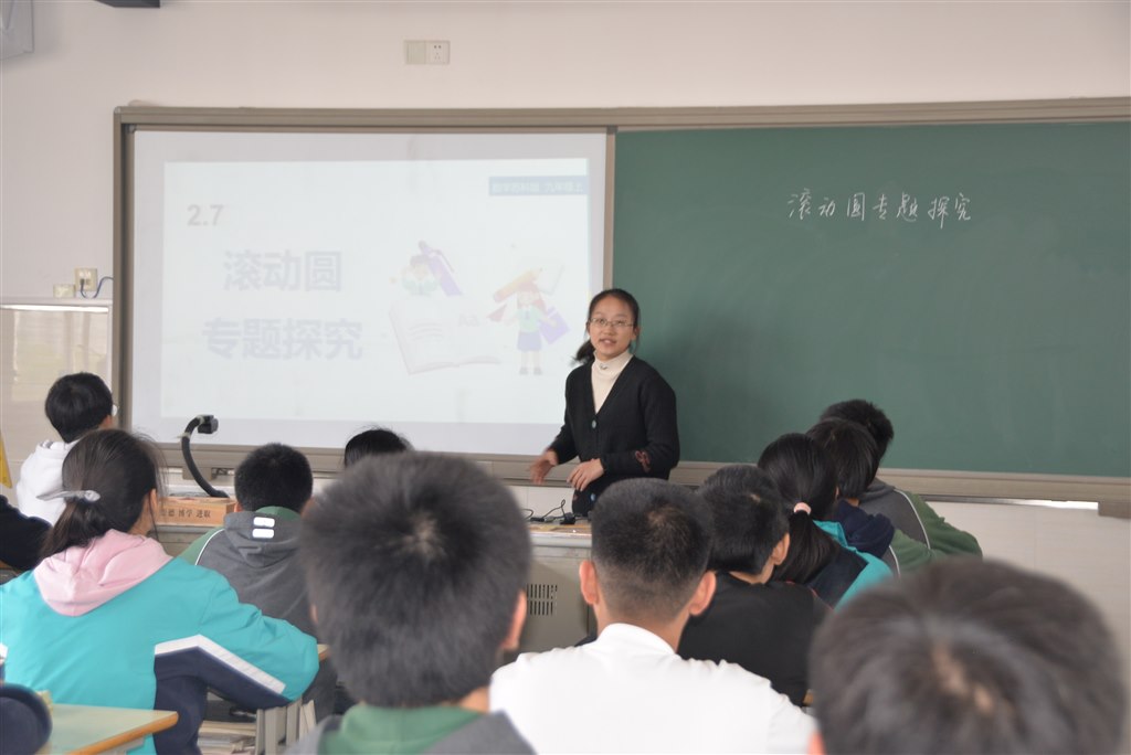 第三节课,数学组恽雯老师就《滚动圆专题探究》这一课题开设了对分课堂研究课。恽老师精准了解学情,精心设计教学梯度,实施教学活动,进而精准地进行反馈。由圆形纸片在直线上,折线上滚动,进而拓展到在多边形上滚动,层层递进,详略得当。学生们积极参与课堂,热烈讨论,大方展示,气氛活跃。