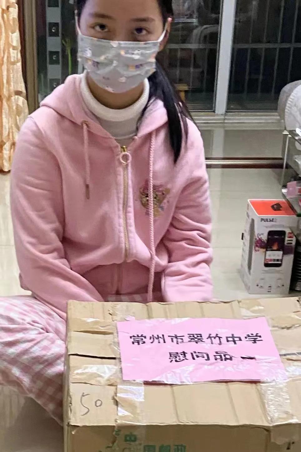 收到学校的慰问电话和慰问品,一股暖流涌上我们全家的心头,没想到学校会惦念着居家隔离的学子,忍不住向亲朋好友炫耀翠中的暖心之举,道一声肺腑感谢且祝师生安康!