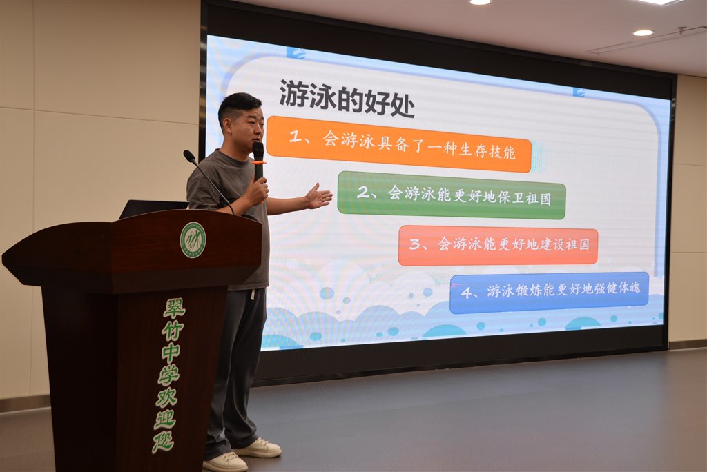 火红的榴花摇曳在五月之末,夏天的脚步越来越近。游泳安全公益讲师张同邦教练走进了美丽的翠竹中学,给七八年级学生带来了一场内容丰富的防溺水讲座。 首先,他用一组数据点明了溺水事件在生活中并不罕见,其中最让人震撼的是全国每年因溺水死亡的人数中65%~75%都是中小学生,这让同学们更加意识到防溺水的重要性。 随后,他又举了多个事例,说明了节假日是溺水的高峰期,而游泳则是罪魁祸首,所以同学们要知道什么时候不能游泳,哪些地方不可以游泳,游泳前应准备什么。 接着是这次讲座的干货:溺水的自救的方法和几个重点注意事项,以及救援溺水者的方法及救援要点。 最后,张教练提出六个不准: 1. 不准私自下水。 2. 不准擅自与他人结伴游泳。 3. 不准在无家长或老师带队下游泳。 4. 不准到不熟悉的水域游泳。 5. 不准到无安全设施,无救援人员的水域游泳。 6. 不准擅自实施水中救援。 “君子安而不忘危”。让我们防患于未然,筑牢安全屏障,在夏天到来之际注意防溺水,呵护生命安全,平平安安地度过美好的夏天! 撰稿:七(7)班 吉喆煊
