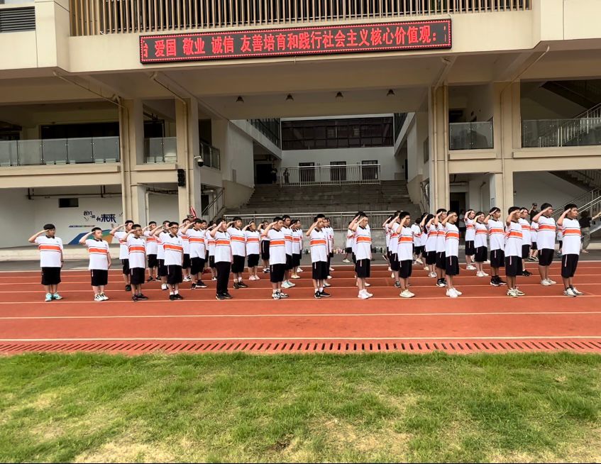 随后屠国斌副校长介绍了校园文化与育人理念,讲解学校特色课程体系;接着王主任介绍七年级育人团队,陈璇老师作为班主任代表讲话,话语蕴藉人心,满是对学生未来的期望;最后教官授旗,新生代表发言。
