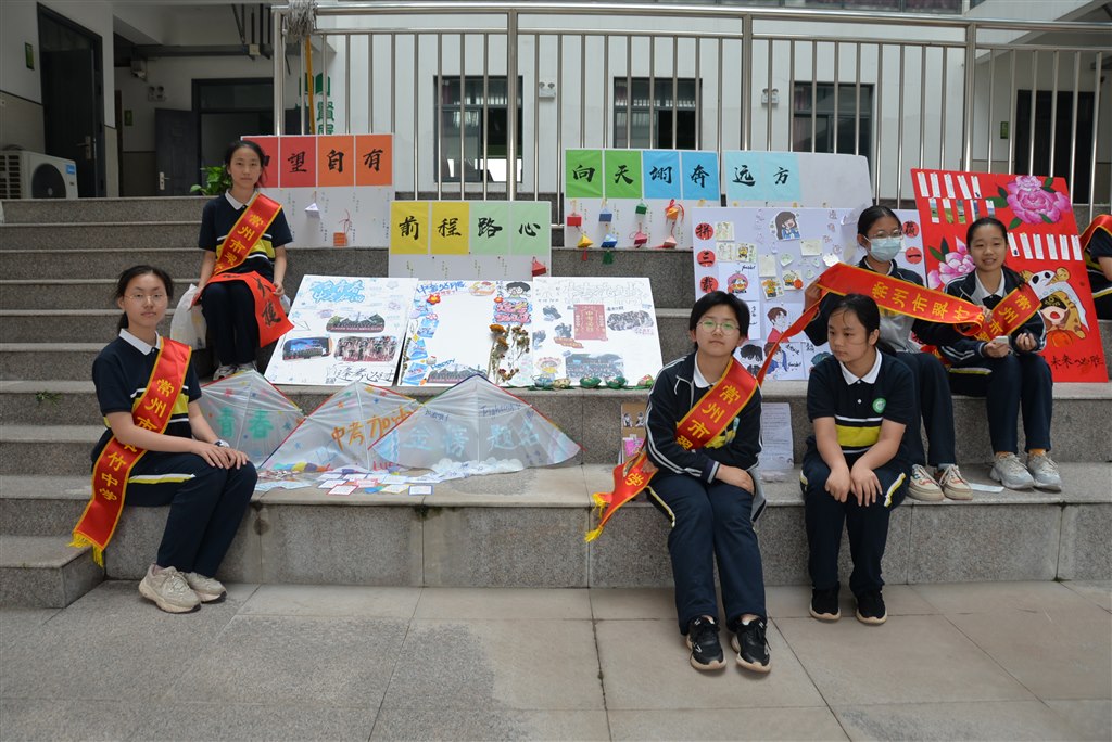 这一头义卖活动开始预热,创意手作祝福show已然拉开序幕。各班代表们带着为九年级学长学姐们精心准备的手作礼物与创意祝福,依次展示并解说礼物背后的玄机与美好寓意或是巧手折叠的爱心香囊,或是亲自制作的祝福糕粽,或是精心定制的刺绣手绘,或是用心排练的音乐表演,扇子、手链、展板……祝福“五花八门”,创意“层出不穷”,多种形式的载体无不传承翠竹精神传递热爱温暖,凝聚学弟学妹们对翠中2023中考祝福