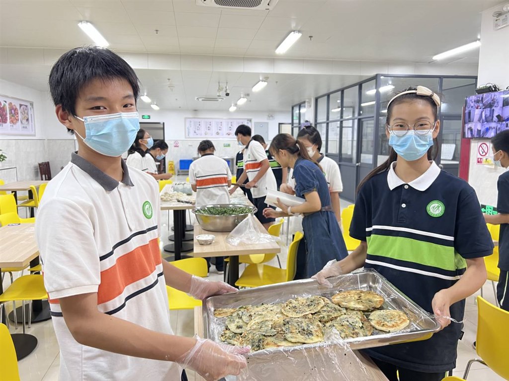 国庆中秋喜相逢,明月耀星旗更红。为弘扬和传承中华优秀传统文化,庆祝国庆中秋双节同辉,厚植学生家国情怀,9月28日中午,我校特开展了“月饼传情,情满中秋”——制作常州亮月饼活动。 活动伊始,学生家长志愿者通过擀、包、压、煎等示范动作,生动细致地向同学们介绍了亮月饼的制作方法。大家目不转睛地注视着阿姨的动作,生怕漏掉每一个制作细节。 期待已久的实践开始了,大家摩拳擦掌、跃跃欲试。同学们分成几个小组,有的专心擀面皮,有的娴熟地包馅,有的刷油煎饼,每个人的脸上都充满了专注和用心的神情。同学们沉浸在自制月饼的喜悦中,活动现场有条不紊,欢声笑语不断。 经过不懈努力,一个个面团在同学们的巧手下变成了一个个香味扑鼻的亮月饼。它或许不是最精致的,也不是最美味的,但却是独一无二的。大家手捧着自己制作的亮月饼,脸上绽放出灿烂的笑容。 随后,同学们将亮月饼切成小块,送给各年级师生一同品尝。真情在月饼中传递,祝福在问候中流淌。老教师参与到活动中,学生们还给关工委退休老教师刘卫平老师送去手作亮月饼,满满的幸福感在老教师心间荡漾。 通过这次活动,同学们身体力行地掌握了亮月饼制作的技艺,也深刻感受到了劳动带来的快乐和趣味。以下是部分同学的心得体会: 亮月饼是常州的特色美食,不过现在已经没多少人做亮月饼了,我从小到大都没吃过呢!中午,我带着我的小锅去煎饼。先在锅上刷一层油,然后将圆圆如月亮般的饼铺在锅上,立马发出呲呲的响声。然后就是隔一会翻一下面直至两面金黄,亮月饼就做好了。包着青菜或韭菜馅的亮月饼散发出诱人的香味,馋的我直流口水。当切饼的同学将饼切好后,他们给了我一块,我迫不及待的塞进嘴里,真好吃!我也是吃过“月亮”的人了! ——七1班司曼玉 今天中午,我们和七年级同学一起在食堂制作了亮月饼——这个就快失传的常州特色饼。从制作到烹饪的过程中,大家都在尝试中寻找方法,总结技巧。慢慢的,饼越做越娴熟,越做越好。虽然只有短短一个中午的时间,但我收获了很多。一方面我的动手能力有了提高,关于烹饪有了一定的体会,另一方面,我们弘扬了做亮月饼这一传统文化,让它不再局限于老一辈人身上,随着时间流逝淡出人们的生活,我们将它重新带到了大家面前让人知晓,这是极有意义的。 ——八5班赵萱 墨绿的菜馅,焦黄的面皮,酥脆焦香四溢。在包饼的一道道纹路里,在一来一回之下,是亮月饼从初生至青涩又走向成熟。这是老常州对中秋的期盼,是家人团圆的心愿。“抬头是同一轮明月,我们也身处同一个当下。”常州向新的目标出发,不变的是亮月饼和我们的初心。常州的中秋文化,常州独有的非遗,既是传承,也是向新目标地进发与努力,不负我们的每个光辉时分。 ——八9班桂贤惠 巧手做月饼,美味共传承。制作常州亮月饼活动以传统佳节为载体,不仅培养了学生的动手实践能力,更将传统文化教育融入其中,让学生们在劳动中体会生活、学会分享,感受浓厚节日氛围的同时,增强对民族文化的认同感和自豪感。 撰稿:杨子夜 拍摄:岳雨菲