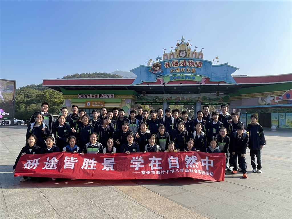 为进一步开阔学生的视野、增长青春的见识,培养学生求真向善臻美的品质,11月11日,我校如期推进秋学期研学课程。 七年级前往东方盐湖城,开展了“大道至简、人道至善、竹道臻美”的主题实践活动。同学们在茅山“山、水、道、盐、泉、茶”六大文化的有机融合中,深入了解了道家传统文化的精髓。他们漫步在古色古香的盐湖城风光中,畅游五行八卦,了解茶道盐田,学习创世神话;沉浸在各类国家级非遗文化的海洋中,感受艺术的魅力。 八年级相聚无锡欢乐园,在与自然、动物的亲密接触中,感受生命的趣味,加强“保护动物,保护森林,与自然和谐相处”的意识。不仅有动物世界的奇妙,更有伙伴共聚的欢乐,同学们在小组合作、交流团建的过程中放松身心,一起设计动物元素的勋章、一起完成动物习性的调查……跨学科的创新与融合,在这里发生! 九年级于南山竹海中登山观林,乘着地轨,一起去看大熊猫“星安”和“华丽”,漫步栈道,一起呼吸新鲜自由的空气,尽享自然风光的美好!鸡鸣村、竹文化馆,了解地方文化典籍,观赏精彩的舞狮表演,更加深切地体会到了学校的五竹精神:生而为君子,就应做到竹根立定、竹形清韵、竹虚胸怀、竹节成长、竹音嘹亮。 瞧~让我们看看孩子们“眼中”的景致吧! “日暮青山绿 ,我心清且微”,微澜的水波在晨光的辉映下重现了浮光跃金的景致,山峰连绵不断,树木繁茂,或青绿或橙红,若是深秋,则可观其层林尽染,想是壮美。右侧则是成片的竹林,笔直挺立,青灰的竹竿一节节匀称分明,别有美感。都说“无竹使人俗”,果真如此。成千上万棵竹聚集在此,一眼望去,繁多而不杂乱,整齐而不呆板,疏密有效,带给整个空间一份清雅高洁的质感和轻盈舒适的美学享受。风起,竹叶飒飒作响,晨曦透过星星点点的缝隙,这一束束光线似乎也有了形状,在地上投下大大小小的光斑。轻嗅,空气中似乎都充盈着竹子特有的清香,透彻肺腑。 ——九5王昕洋 南山竹海之游,风景极佳,山水应和,其乐无穷。途中曲乐轻缓,婉婉动听。鸟鸣如脆铃清响,使人的心灵像在潺潺清泉中流动,在幽静秀丽的林壑间舞动。向更高处望去,远远的竹林茂密,每一根竹像哨兵般立着,“千磨万击还坚劲,任尔东西南北风”!在广阔的湖面之上偶有一艘竹筏漂过,有一种“偷得浮生半日闲”的自在和松弛。坐上缆车,来到烟火寻常的山间小镇,舞狮的锣鼓声,商贩的叫卖声,同学们的嬉闹声……一切又生动鲜活起来了。生活的美好本就如此,一花一树、一草一木、一期一会。——九9 张欣雨 昨天,我有幸伴着同学游览了南山竹海,仿佛步入了一幅流动的翠绿画卷。沿着蜿蜒的小径,两旁是翠竹如海,清风徐来,竹叶沙沙作响,宛如自然的交响乐。静湖如镜,竹影婆娑,湖边的竹筏轻摇,波纹随之起伏,耳边的风声好像是在诉说着千年的故事。深入竹海,清新的空气中弥漫着淡淡的竹香,让人心境宁静。每一片竹叶都在轻轻摇曳,似乎在欢迎每一位游客。我乘坐缆车,穿越这片绿色的海洋,俯瞰下方,竹海波澜壮阔,令人心旷神怡。在这里,我找到了与自然和谐共处的宁静。——九2彭立程 恰逢青春好时光,尽享橙黄橘绿时。自然、生活、广阔的天地……都是最生动的课堂。