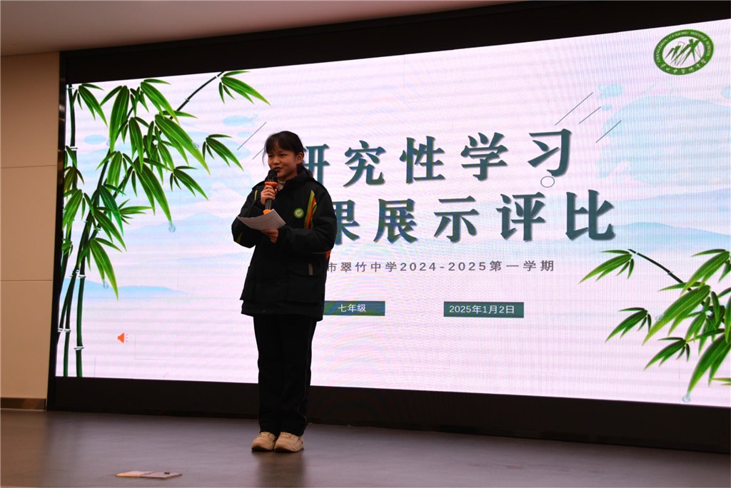 随着学期尾声的悄然临近,常州市翠竹中学的七年级学子们欢聚一堂,展示了一场别开生面的综合实践活动研究性学习展示评比。 在过去的这一学期里,七年级的学生们在指导老师的带领下进行了课题研究,这些课题横跨自然科学与社会科学的广袤领域,穿梭于历史文化的深邃长廊与现代科技的璀璨前沿。每一个课题都犹如一盏明灯,照亮了学生们探索未知世界的渴望与征途。 课堂外,同学们以实地考察为舟,以问卷调查为帆,以数据分析为舵,乘风破浪,收集了大量珍贵的信息与数据,精心培育出一朵朵璀璨的研究成果之花。 展示汇报环节高潮迭起,精彩纷呈,每一份研究成果都彰显出深入骨髓的透彻与独到见解。770602小组以其《校园建筑的几何模型探究》,巧妙地揭示了校园建筑的美学奥秘;750608小组的《信息化博物馆研究》则引领我们步入了一个数字与文物交融的新世界;780808小组凭借《舌尖上的革命——三减生活方式对全民健康影响的研究》,深刻剖析了健康饮食方式的深远意义。这些课题无不闪烁着同学们对知识海洋的无限热爱与对未知领域的勇敢探索之光。790403和740403两个小组的《探究说英语国家的不同问候方式》以独特的视角展现了全球文化的多样性;而720406小组的《对校园霸凌说“不”——初中生校园霸凌调查》则直击社会痛点,引发了在场师生的深切共鸣与广泛关注。730110小组的《动漫对当代美术的影响》给全场师生掀起了国漫热潮,让大家沉浸其中。710113小组的《茶文化的探究与实践》,他们以一场生动有趣的茶艺展示,将评委和代表们带入了东西方茶文化交融的美妙境界。小组成员以谦逊大方的姿态,亲手奉上精心泡制的茶饮与点心,不仅展现了茶文化的深厚底蕴,更激发了同学们对美好生活的无限向往与憧憬。这一幕幕温馨而深刻的场景,成为了此次展示活动中一道亮丽的风景线。 在评比活动的总结阶段,陈庆艳副校长满怀激情地登上讲台,发表了一段鼓舞人心的致辞。她首先对同学们在综合实践活动中所取得的卓越研究成果给予了高度的赞扬,字里行间流露出对同学们智慧与努力的深深认可。陈副校长深情地激励在场的每一位学子,要继续怀揣着对知识的无限渴望,以及对未知世界永不满足的探索精神,勇往直前,不断攀登知识的高峰。 随着本次综合实践活动研究性学习展示评比圆满落幕,我们不仅见证了同学们丰厚的研究成果与非凡的创新能力,更深刻感受到了翠中学子们对知识的无限热爱与对未知世界的勇敢探索。此次活动不仅是一次学习与实践的深度碰撞,更是同学们成长道路上的一次宝贵历练。在未来的日子里,翠竹中学的学子们能够继续闪耀光芒,创造更多令人瞩目的成就。