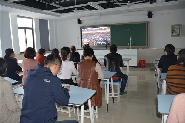 观看报告、学习报告,党员教工纷纷表示紧密团结在以习近平同志为核心的党中央周围,充分发挥党员先锋模范作用,争做“四讲四有”合格党员,扎实做好本职工作,以自身实际行动为教育事业为实现中华民族伟大复兴中国梦贡献力量。