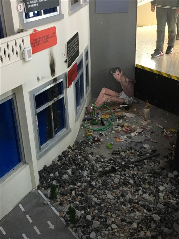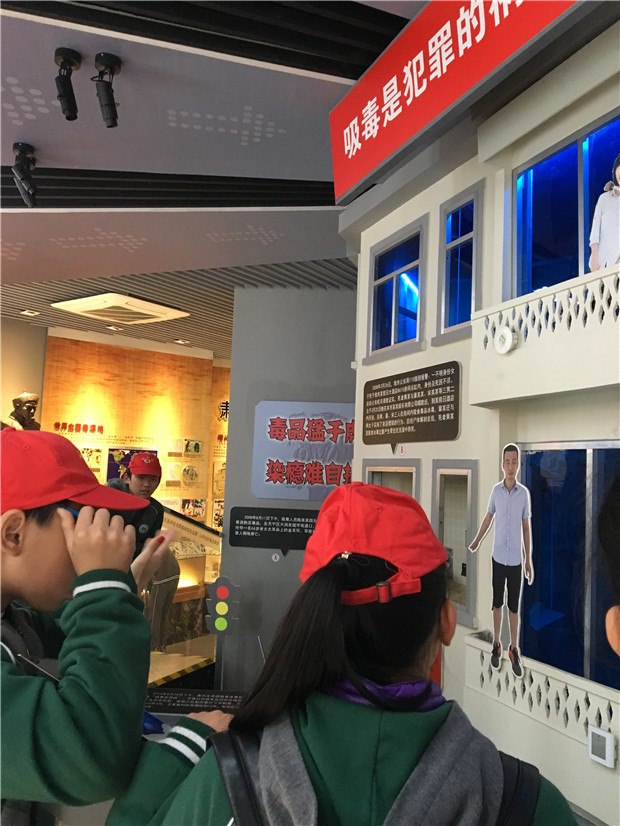 位于顶层的禁毒展厅,一幅幅图片讲述了毒品的发展演变,美丽的外表下暗藏着危险的信号,透明的玻璃展柜中的毒品模型让人对毒品有了更深层以及更直观的认识。