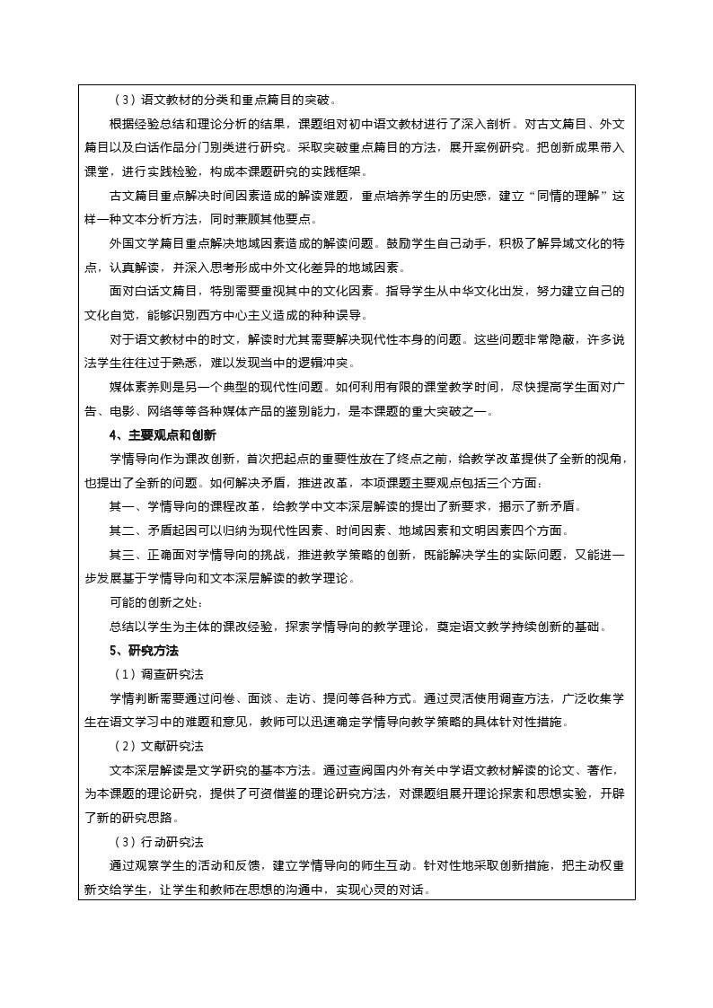 《语文文本深层解读与学情导向之间的矛盾研究》开题论证书