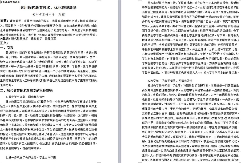 课题论文《运用现代教育技术,优化物理教学》